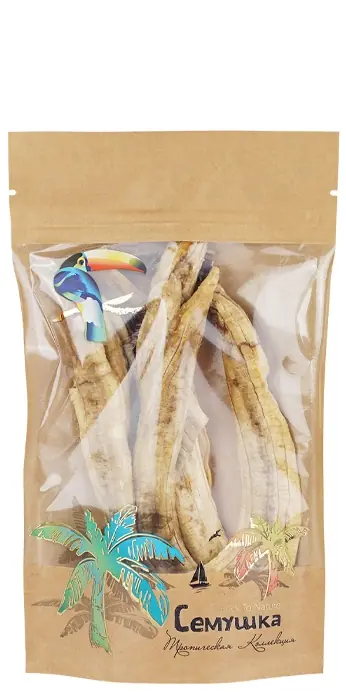 Бананы сушеные от торговой марки "Семушка" – это высокое качество и приятный натуральный тропический вкус спелых сушеных бананов дольками. Идеальное природное вкусное лакомство к чаепитию и отличный ингредиент для приготовления десертов. Без добавления сахара.